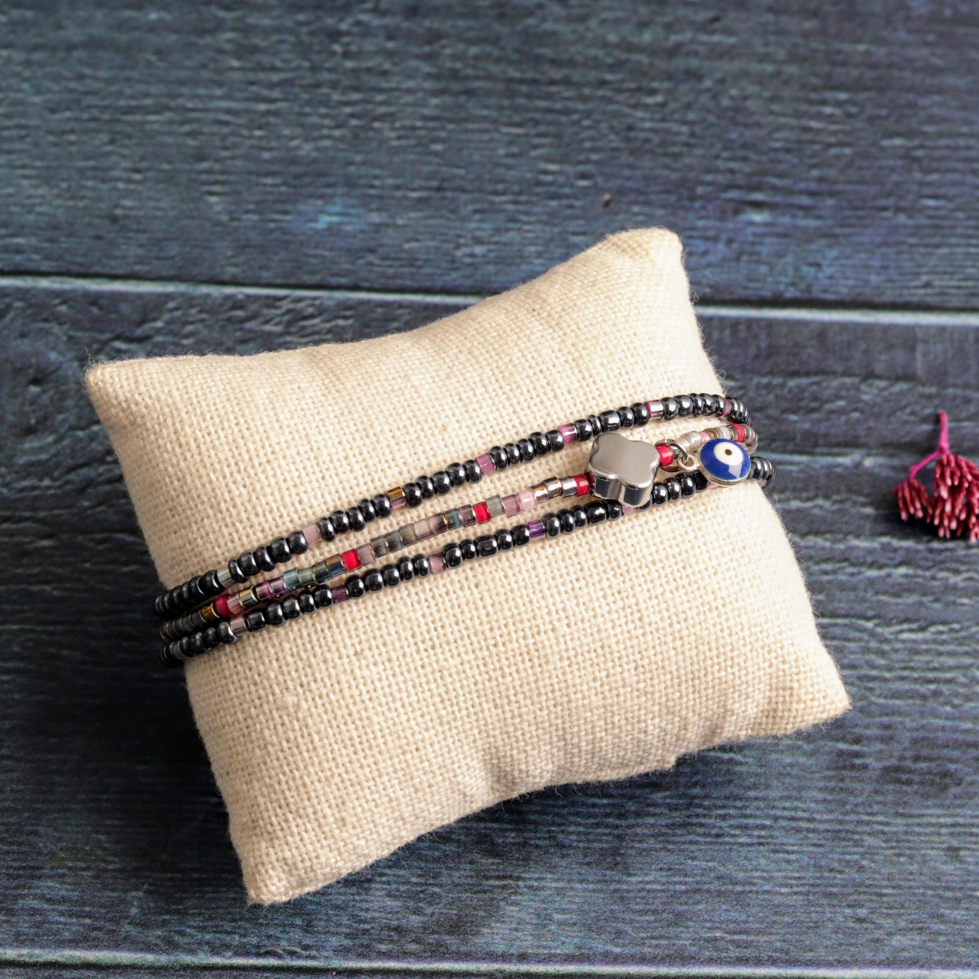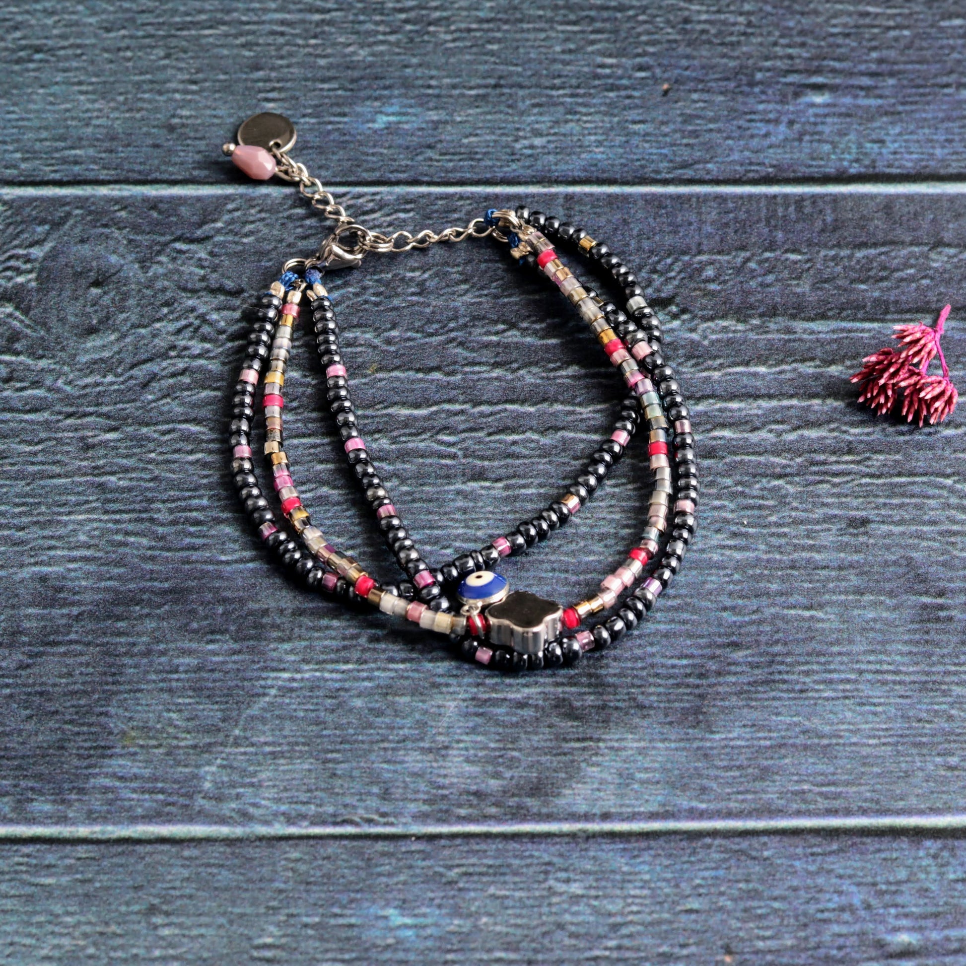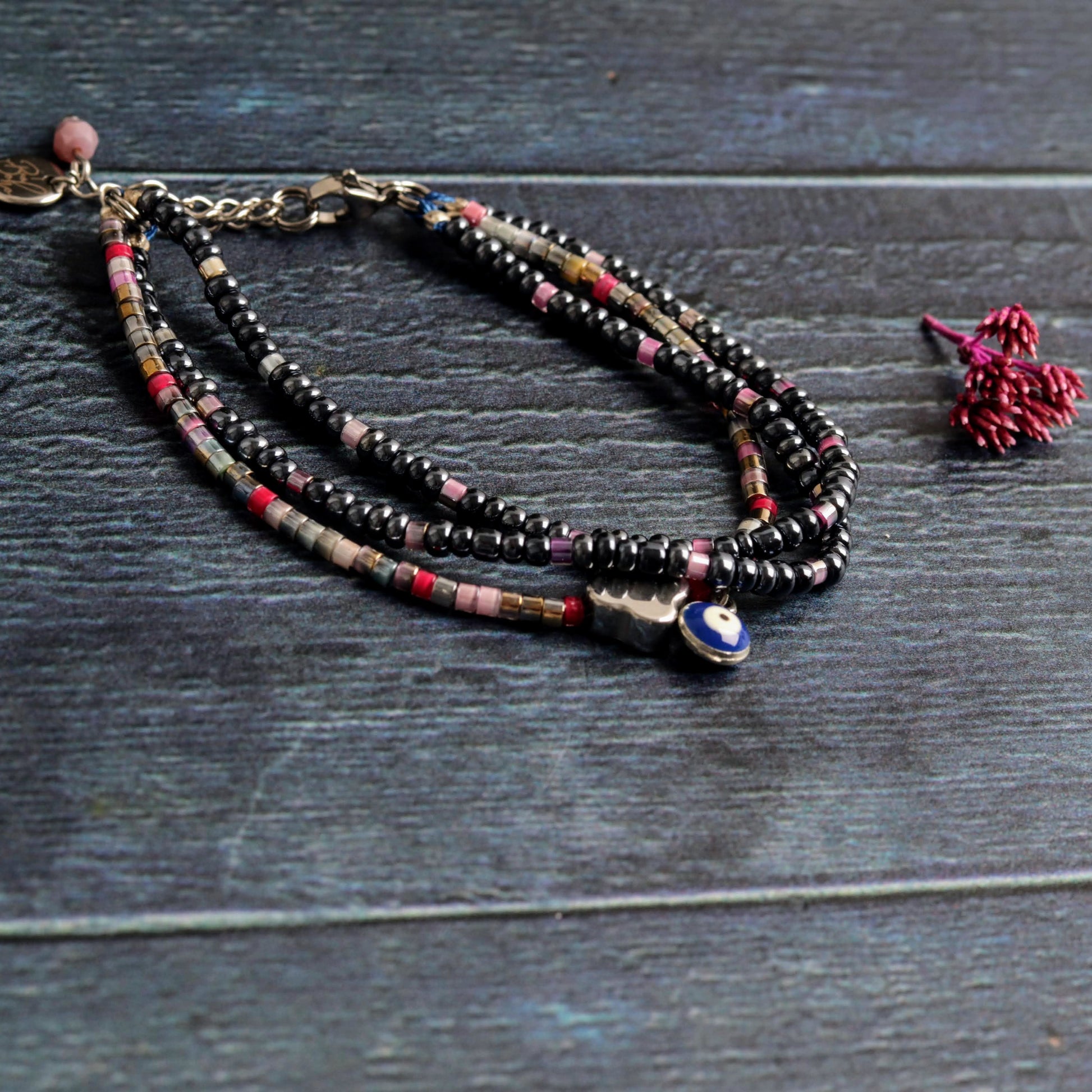 A handmade beaded bracelet with a stunning colour pallet and tons of potential