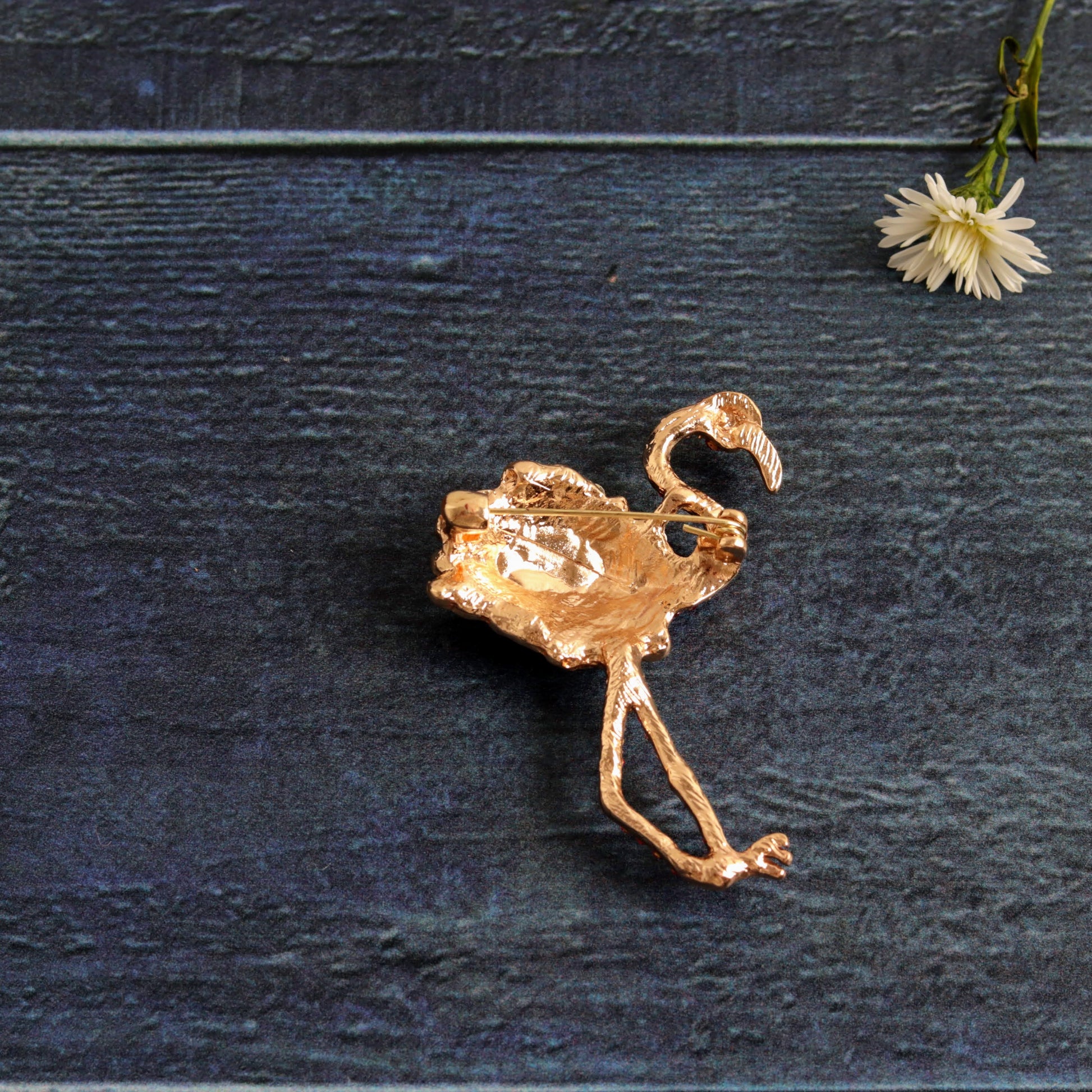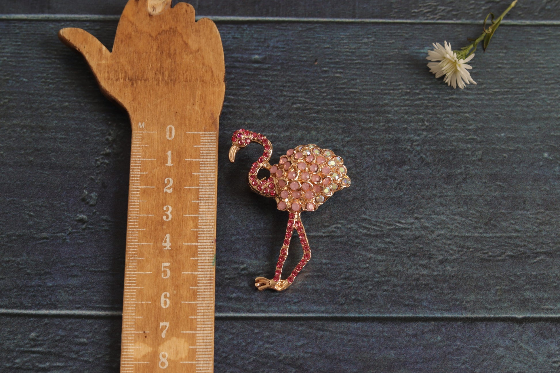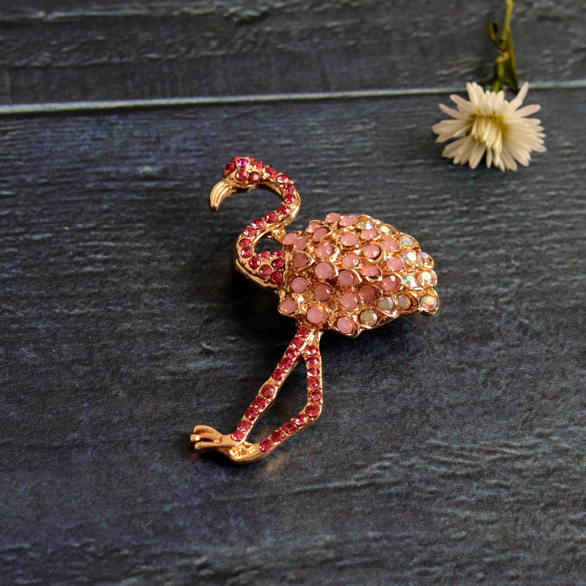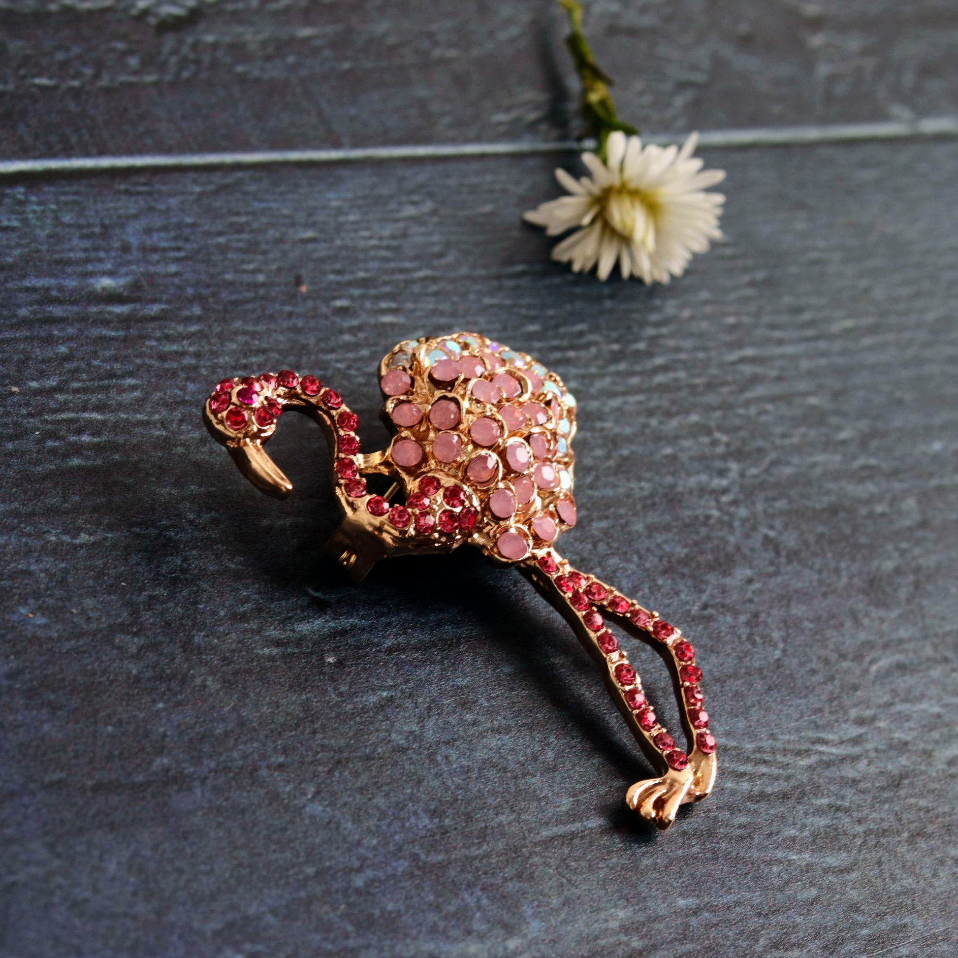 This playful piece features a cute flamingo adorned with sparkling rhinestones that catch the light. With vibrant pink and clear stones, it adds colour and sparkle to anything you wear. Pin it on your jacket, scarf, or bag for a fun touch.