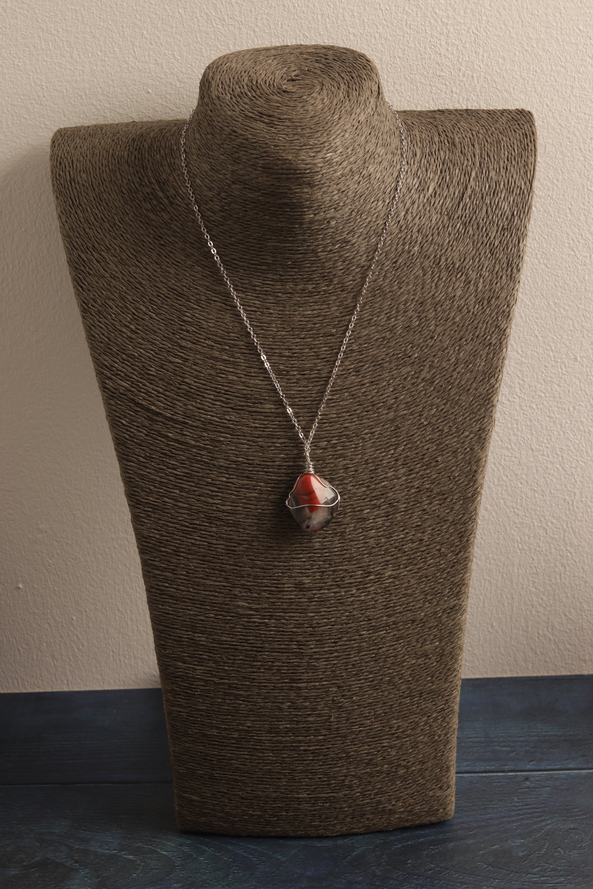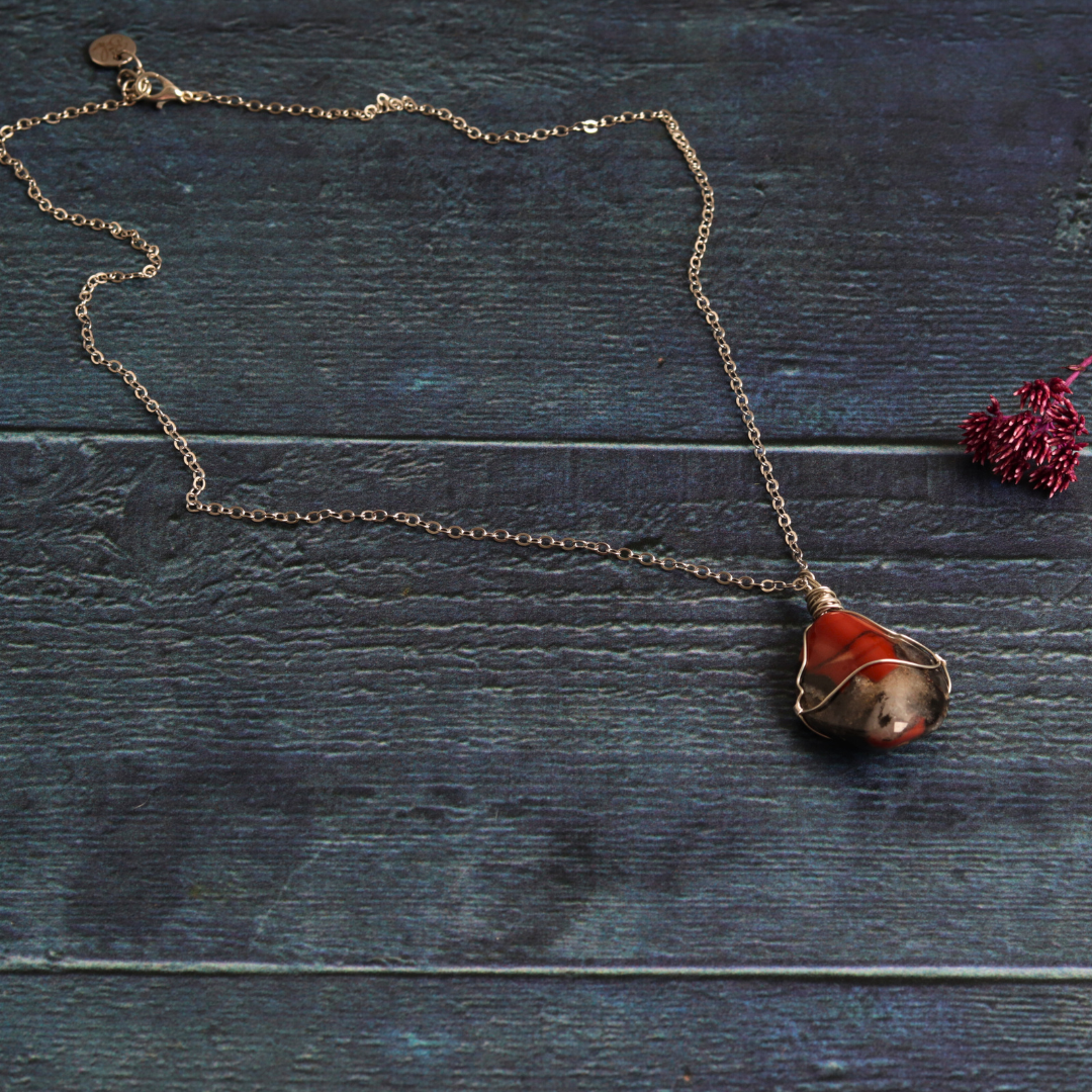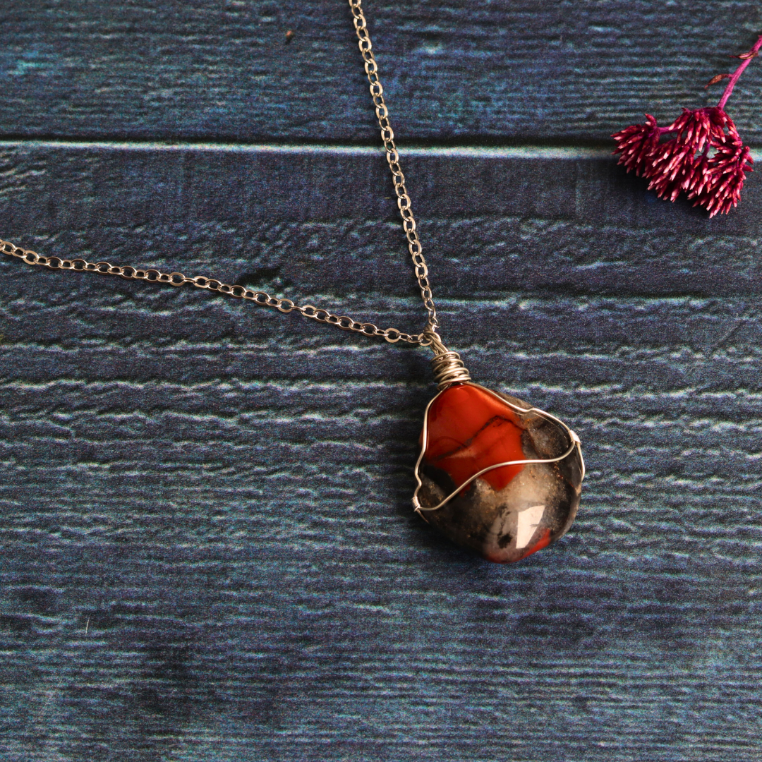 Check out this classic handmade necklace featuring a cool brecciated jasper stone wrapped in stainless steel that won't tarnish. The unique patterns and earthy colours of the jasper stand out! Since it’s handmade, you know it has that special touch. This piece is super versatile, so you can rock it with just about any outfit. Plus, brecciated jasper is all about stability and balance, making it not just stylish but also a little boost for your vibe!