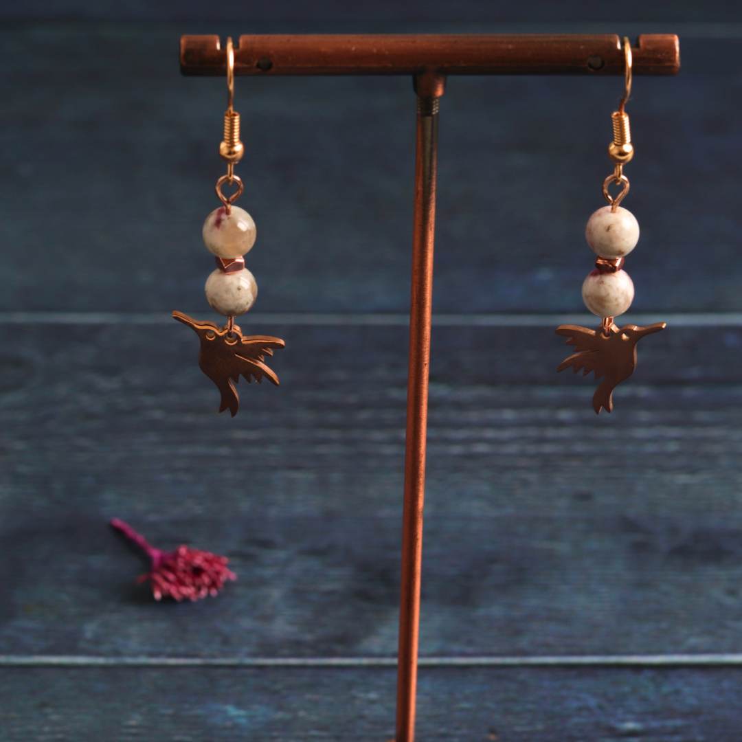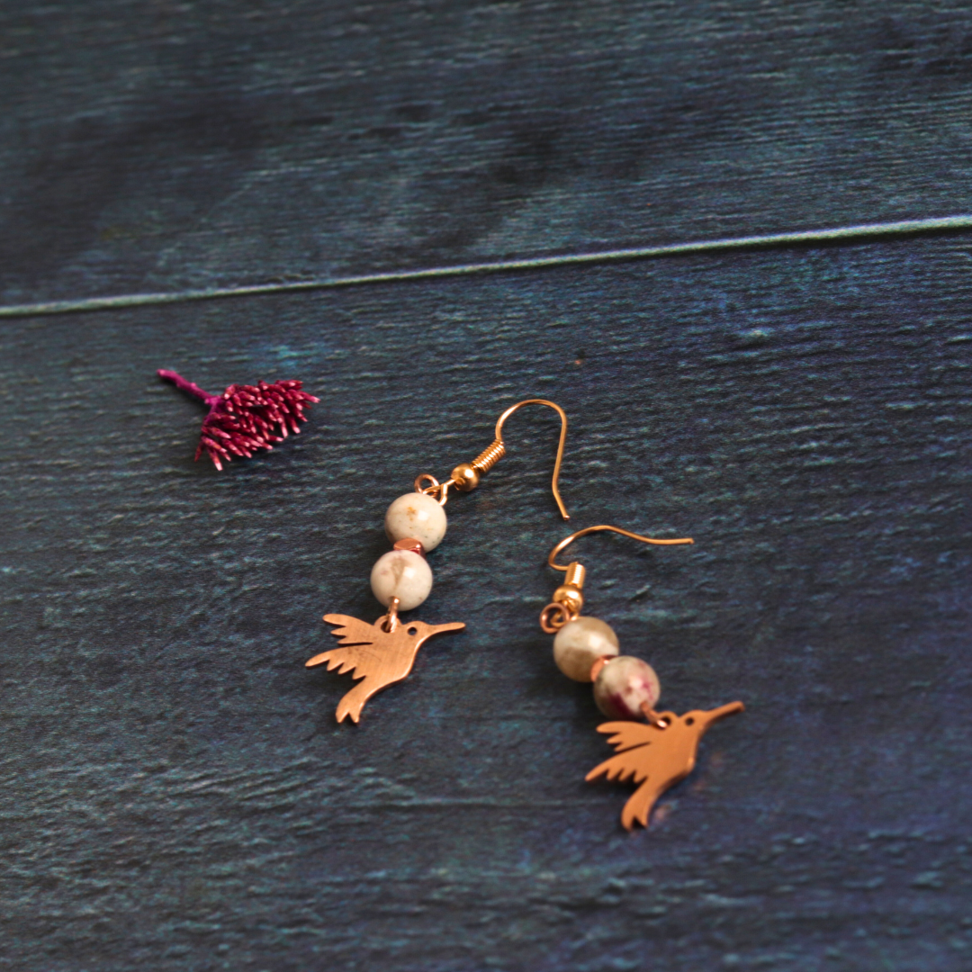 These enchanting plum blossom earrings are handmade from rose gold-plated stainless steel, ensuring they'll never tarnish. The lovely plum blossom symbolizes beauty and resilience, while the birdie motif represents freedom. Wear these earrings to embrace your spirit of independence